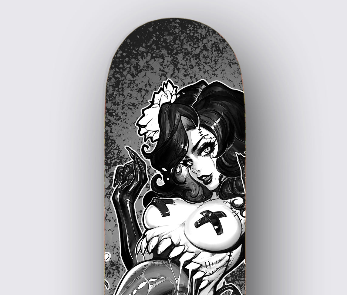 Grab this skate deck before it skates away! This limited edition Kinky Cuties Skate Deck is made from Canadian Maple wood and is 8" of gorgeousness! Not only does it look great, but it's a perfect decoration and collector item.